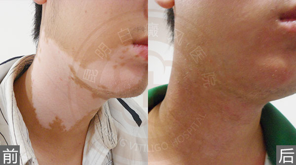 311光疗照射面积大,范围广;配合中医药物能快速激活酪氨酸酶活性,刺激黑色素细胞再生。一般坚持治疗就能见效,治疗中可以明显看到就会有黑色素岛形成。